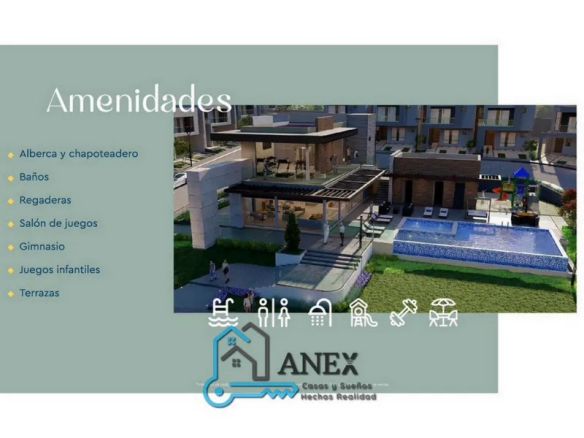 Recuerda que las propiedades mostradas pueden incluir o no ciertos aditamientos como cocina, closets, cancelería, espejos etc. Por favor consuta con tu asesor ANEX sobre las opciones que se pueden incluir en la propiedad.